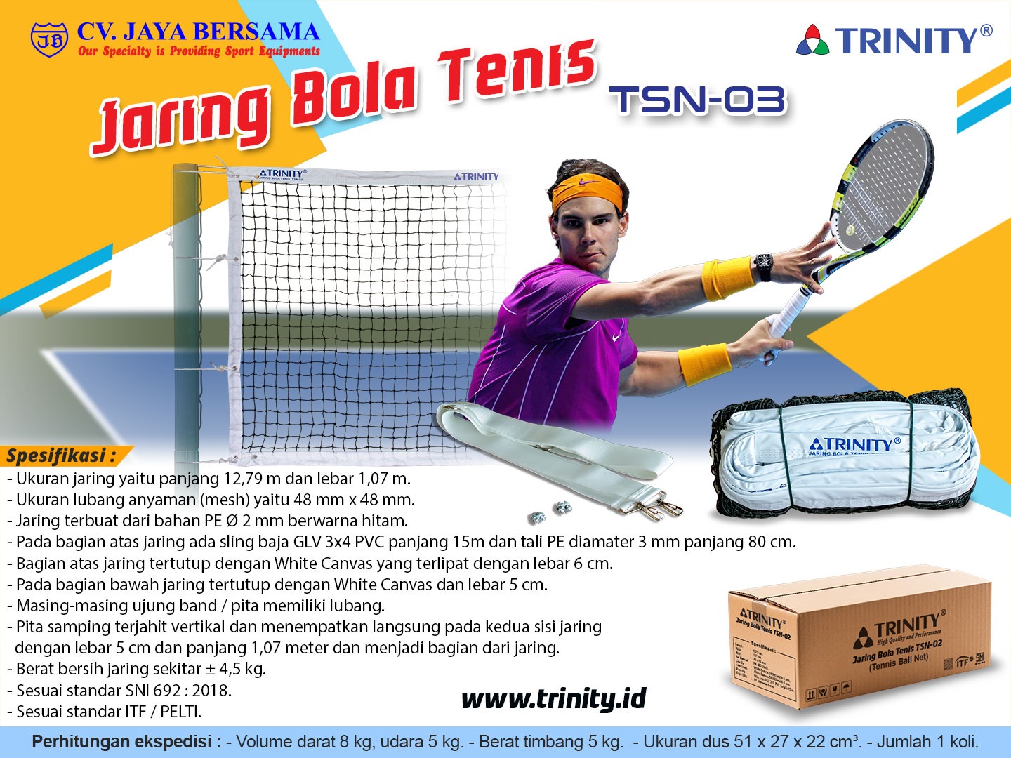 Spesifikasi Jaring Bola Tenis TSN-03 (Tennis Ball Net) merek Trinity adalah sebagai berikut :